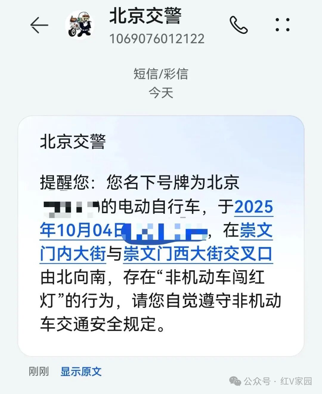 市民在收到违法提示短信后